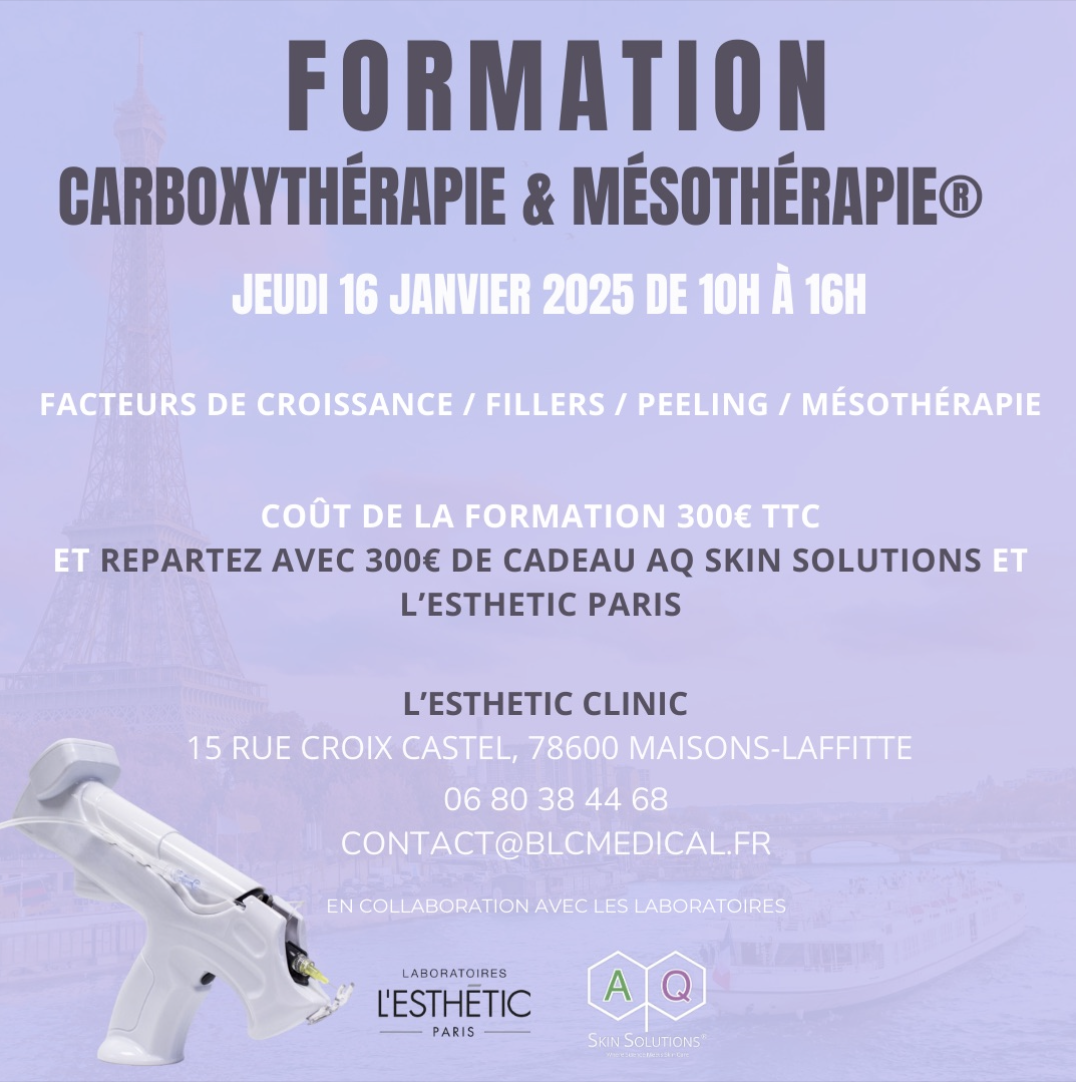 Découvrez notre formation sur la Carboxythérapie et la Mésothérapie® à Maisons-Laffitte, une occasion unique pour les professionnels de l'esthétique de découvrir cet appareil révolutionnaire de carboxythérapie & mésothérapie 2 en 1. Le 16 janvier 2025, venez apprendre à maîtriser un pistolet 2 en 1 pour ces traitements efficaces.