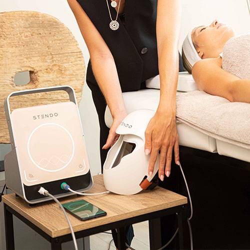Professionnels de l'esthétique, découvrez le dernier bijou de la technologie Stendo® : le masque Stendo® FACE. Cette innovation brevetée révolutionne les soins du visage en générant des ondes pulsatiles synchronisées avec le rythme cardiaque. Pendant 30 minutes, plus de 2 000 stimulations agissent en profondeur sur les tissus et les muscles peauciers, améliorant la vascularisation et stimulant les fibroblastes, garants de la jeunesse de la peau. Stendo® FACE offre ainsi un rajeunissement naturel et durable, réduisant les ridules et améliorant le teint.